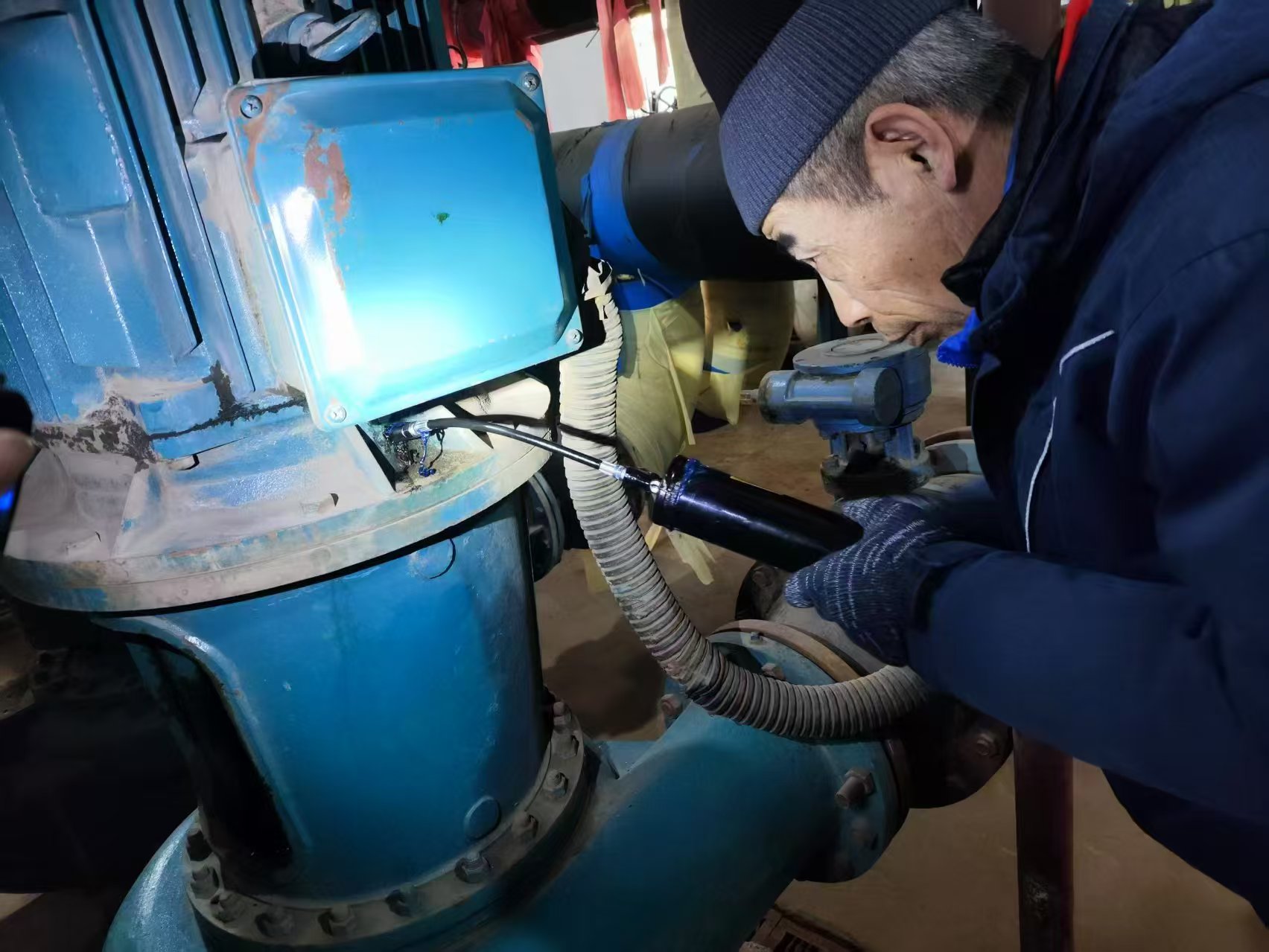 2024年12月23日晚上8點(diǎn)多,萬惠站內(nèi)失水掉壓,蘇昭和同事們立即沿線進(jìn)行排查,找到2處跑水點(diǎn)。在緊張的搶修過程中,蘇昭白天配合挖機(jī)作業(yè)、抽排污水,晚上協(xié)助檢修所員工下地溝為DN300的管網(wǎng)打上2個大抱卡。經(jīng)過一天一夜的連續(xù)奮戰(zhàn),終于在24號凌晨2:00完成了搶修和回填,92個商鋪恢復(fù)了供熱。由于天氣寒冷,蘇昭和同事們身上結(jié)出了冰碴,手也凍僵了。“忙起來就顧不了那么多了,問題解決了才能松一口氣。”他說。