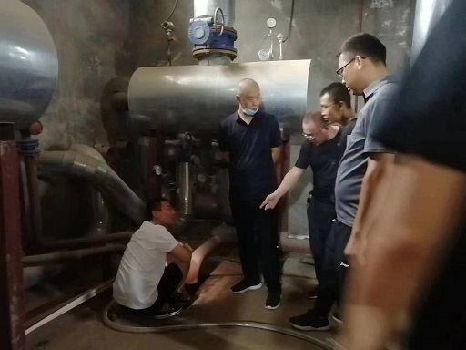 走訪中,每到一個運營所首先查看了當天人員值班情況,并仔細地詢問了各所防汛物資準備情況。在理想佳苑熱力站和所里工作人員一起查看了地下站的積水坑和備用排污泵情況。在中海錦繡城熱力站和宇泰熱力站查看了站內滲漏點,并要求運營所負責人盡快和物業聯系,解決滲水點存在的安全隱患,要即刻做好設備的防滴漏防水保護。在檢修所一次網抽水現場作業現場,要求近兩天停止抽水作業,保證施工作業安全,同時將工作重心轉移到近兩天防汛排水保障搶險任務中。