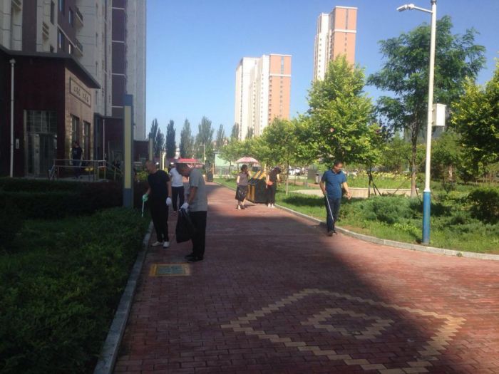 客服提升小組在小區明顯位置擺放展臺和宣傳畫向業主征詢服務滿意度,發放關于消防安全等宣傳單;保潔綠化小組成員配合小區全體保潔人員開展清掃環路衛生、撿拾草坪內的垃圾、清洗垃圾箱等衛生清潔工作;工程提升小組成員對金城小區的單元門開啟不靈、關閉不嚴等問題進行了現場維修。