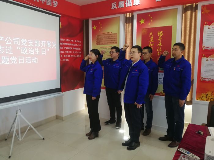上,學習了《中國共產黨章程》黨支部書記郭依群為付強同志贈送了“政治生日”賀卡和政治書籍,并同全體黨員在黨旗下重溫入黨誓詞